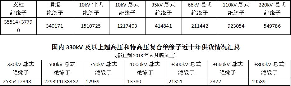 國(guó)內(nèi)220kV及以下高壓復(fù)合絕緣子近十年供貨情況匯總