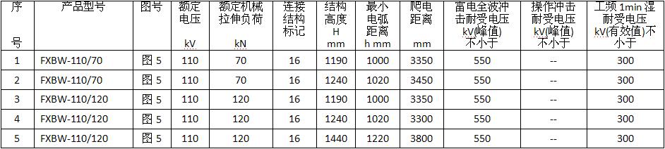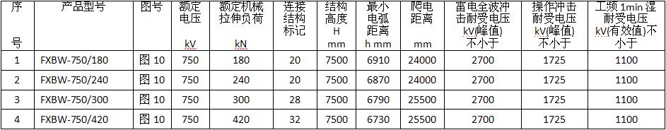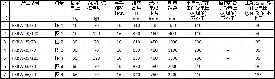 棒形懸式復(fù)合絕緣子主要尺寸與特性表